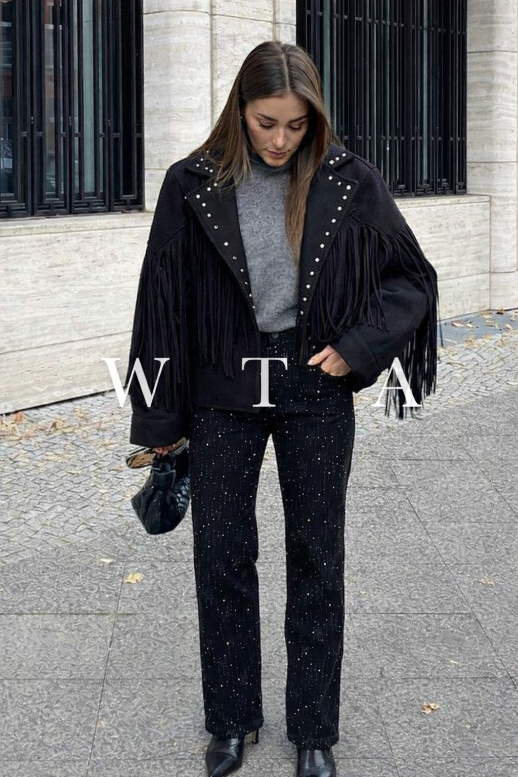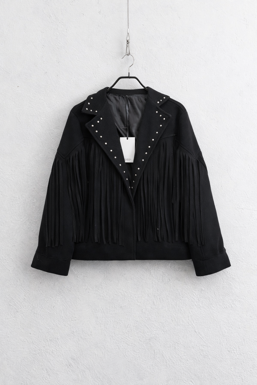 Κοντό Παλτό με Κρόσσια & Τρουκς στο Γιακά. Τσέπες & Φόδρα Εσωτερικά. Τελείωμα Μανικιών με Χρυσό Κουμπί